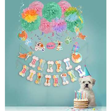 Paper Jazz Puppy Dog Theme Party Decoration Hanging Happy Birthday Banner Dog Swirls Tissue Poms for Baby Shower Party