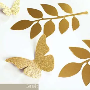 Introducing the exceptional Letjolt Leaves & Butterflies Decoration Set – the perfect solution for anyone looking to infuse their space with a lush, vibrant appeal. This thoughtfully crafted set features premium gold cardstock adorned with meticulous metallic foil branches and sparkling glitter butterflies, ensuring it captures attention in style. The set includes 8 long branches measuring about 7.1 inches in length, along with 4...