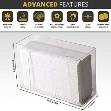 Paper Towel Dispenser by Oasis Creations, Holds 250 Paper Towels, Wall Mounted, Countertop Paper Towel Dispenser, Universal Paper Towel Holder- Clear