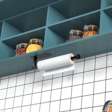 Paper Towel Holder, Self Adhesive or Screw Mounting, Black Paper Towel Holder Wall Mount, SUS304 Stainless Steel Paper Towel Holder Under Cabinet for Kitchen, Counter, Cabinet, Bathroom