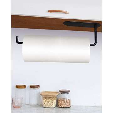 Paper Towel Holder Under Cabinet Mount - Adhesive or Drilling Black Paper Towel Holder Stick on Wall for Kitchen and Bathroom, SUS304 Stainless Steel