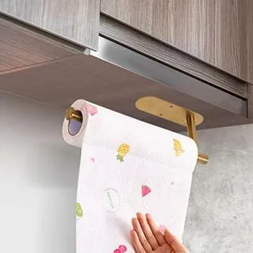 Paper Towel Holder - Under Cabinet Paper Towel Holder, Wall Mounted, Self-Adhesive or Screw, Adjustable Rack, 304 Stainless Steel, Fits Standard-Sized Paper Towel Rolls (Brushed Gold 1 Pack)