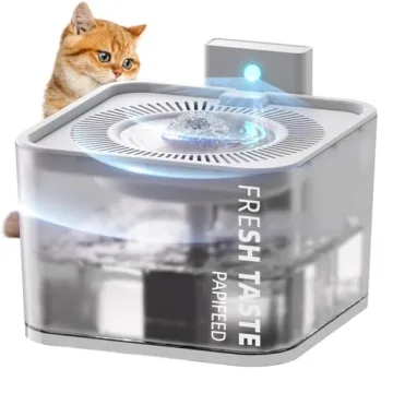 Show more Discover the perfect blend of functionality and style with the PAPIFEED Cat Water Dispenser. This innovative water fountain is expertly crafted to cater to your pet's hydration needs while providing peace of mind for busy pet owners. Featuring a 360° leak-proof design, you can say goodbye to worries about spillage and flooding. The translucent tank allows for easy visibility and monitoring of the water level, ensuring your furry friend always has access to fresh, pristine water. With a 3-liter capacity, this dispenser is perfect for multiple pets, or for those who demand more hydration throughout the day.