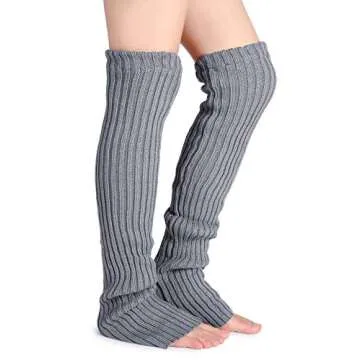 Pareberry Women's Winter Over Knee High Footless Socks Knit Warm Long Leg Warmers (Grey)
