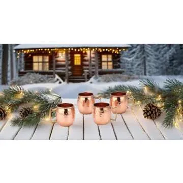 PARIJAT HANDICRAFT 2 Oz. Solid Copper Mini Moscow Mule Shot Mug, Set of 4 Authentic 100% Solid Copper Hammered Moscow Mule Mug 2-Oz Shot Glass - Set of 4