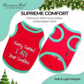 Parisian Pet Dog Tshirt - Embroidered “ Sorry Santa I Ate Your Cookies “ Dog Shirt - Lightweight Cotton Dog Christmas Outfit - Sleeveless Christmas Dog Clothes - Dog Shirts for Medium Dogs - M