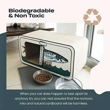 Show moreIntroducing the Park & Bench Supreme Cat Condo with Cat Scratcher and Lounger, where feline fun meets stylish design! Crafted with love for your furry friends, this innovative cat scratcher boasts a charming Catalan Anchovy tin theme, brilliantly designed to satisfy your kitty’s natural scratching instincts while blending seamlessly with the aesthetics of your living space. Measuring approximately 12 x 24 x 12 inches and weighing a lightweight 4.5 lbs, this premium cat condo doubles as a cozy lounging nook, providing endless entertainment and relaxation for your beloved pets.