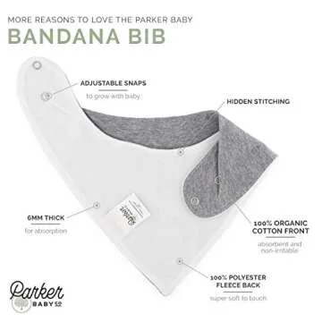 Show moreIntroducing the ultimate solution for drooling and teething babies, the Parker Baby Bandana Drool Bibs are a must-have for parents seeking both style and functionality. Made from 100% soft organic cotton on the front and backed with 100% soft polyester, these bibs offer unparalleled absorbency, ensuring your little one stays dry during all their teething adventures. With an adorable bandana shape, they add a fashion-forward flair to any outfit, making drool as cute as it can be!