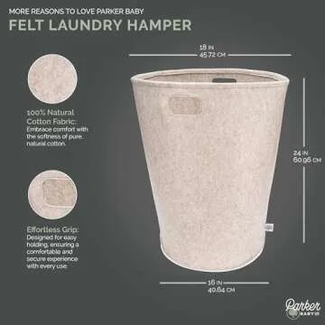 Parker Baby Nursery Laundry Hamper - Large Felt Storage Basket and Baby Hamper for Nursery (Oatmeal)