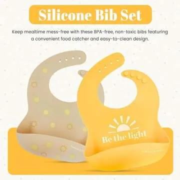 [h4]Comparison[/h4]When compared to conventional fabric bibs, the Boho Sunshine Silicone Bibs offer superior ease of cleaning and better protection against spills. Unlike typical cotton bibs, these silicone ones can be quickly wiped down or easily rinsed without retaining stains or odors, ensuring a hygienic meal experience for your little ones.