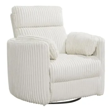 Show moreIntroducing the Parker Living Radius Modern Fabric Swivel Glider Recliner in Ivory – a stunning fusion of contemporary design and unparalleled comfort. This luxurious recliner not only serves as a chic accent piece for your home but is also engineered for practicality. With its innovative FreeMotion cordless battery pack, you enjoy the freedom to position it wherever you want, unbound by power outlets. Its elegant chenille fabric cover provides a soft touch while adding a touch of sophistication to any décor, making this chair a great fit for both modern and traditional settings.