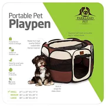 Parkland Pet Portable Foldable Playpen Exercise Kennel Dogs Cats Indoor/Outdoor Removable Mesh Shade Cover, Carrying Case & Collapsible Travel Bowl (Small)