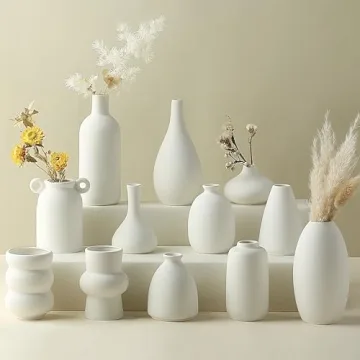 Parlamain Set of 12 White Ceramic Vases, Elegant Japandi Design for Home Decor