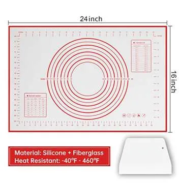 When compared to other baking mats on the market, the Partyreal CA5799 stands out due to its non-slip design which assures it stays in place during heavy mixing and kneading. Many mats might suffer from slipping or fraying edges, but our product's double thickness guarantees a longer life and a more secure performance. Furthermore, the silicone we use is of premium quality—durable and resistant to temperature extremes, unlike generic brands that can warp or burn easily. With the added inches markings and included dough scraper, it becomes an unmatched value for those serious about cooking and baking.