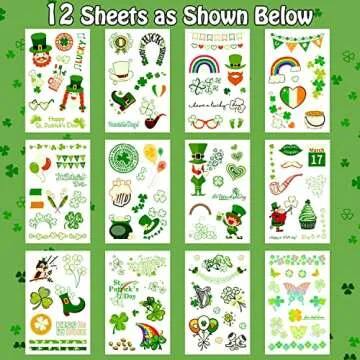 Partywind 12 Sheets Glow St Patrick's Day Temporary Tattoos for Kids, Luminous Saint Patrick's Day Accessories Party Decorations, Irish Shamrock Stickers Goodie Bags Stuffers
