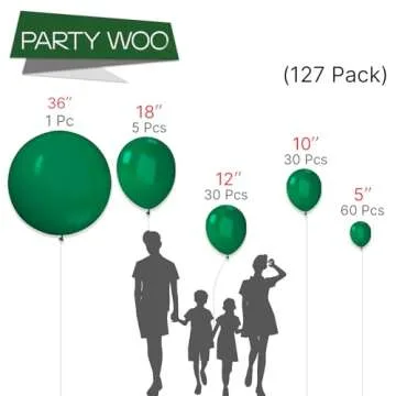 PartyWoo Hunter Green Balloons, 127 pcs Dark Green Balloons Different Sizes Pack of 36 Inch 18 Inch 12 Inch 10 Inch 5 Inch Deep Green Balloons for Balloon Garland Arch as Party Decorations, Green-Y56