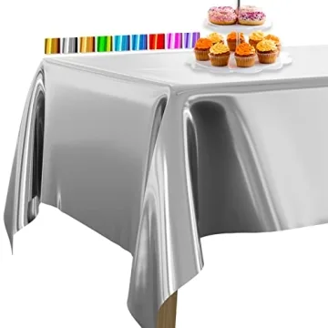 Show moreTransform your gatherings with the exquisite PartyWoo Silver Foil Tablecloth, a must-have for any event that calls for a touch of elegance. Measuring 137 x 274 cm (54 x 108 inches), this premium table cover is designed to fit rectangular tables up to 8 feet long. Crafted from high-quality, durable aluminum foil, it offers not only a stunning aesthetic but also a robust, waterproof surface that resists tears, ensuring a clean and sophisticated setup for your occasions.