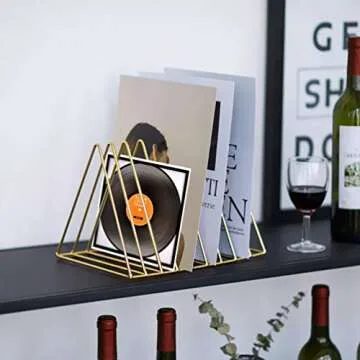 Pashion Vinyl Record Stand Holder, Desktop Album Storage Rack, Triangle Vinyl Record Shelf Display Vinyl Coated Metal Wire Rack Functional & Stylish Display Rack for Office Home