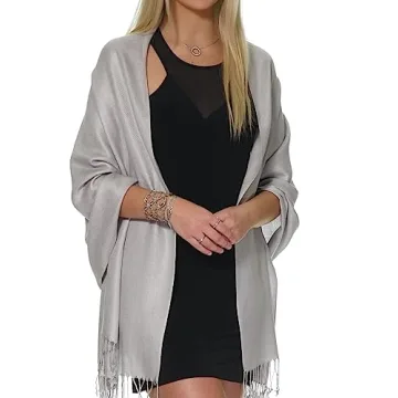 Elegant Light Grey Silver Pashmina Shawl for Evening Dresses
