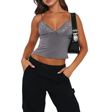 Show moreIntroducing the Passec Women Lace Trim Camisole Crop Top, a quintessential addition to your wardrobe that seamlessly blends comfort with style. This sleek sleeveless design boasts a delicate lace trim that adds a touch of elegance, making it perfect for casual outings or layered under your favorite jackets. The V-neck silhouette flatters every figure, while the slim fit enhances your natural curves. Crafted from soft, breathable fabric, this grey tank top is not only stylish but also perfect for all-day wear. The spaghetti straps give it a trendy Y2K vibe, making it a go-to for anyone looking to add a nostalgic touch to their modern style.