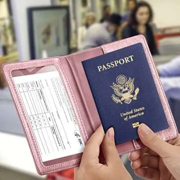 Passport and Vaccine Card Holder Combo, Passport Cover with Vaccine Card Slot, Wallet, Passport Case Holder for Women and Men(AE-Rose gold