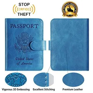 Passport Holder Cover Wallet RFID Blocking Leather Card Case Travel Accessories for Women Men (Blue)