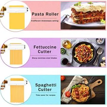 Pasta Maker Attachment for Kitchenaid/Cuisinart Stand Mixers, 3 in 1 Noodle Maker Pasta Roller Fettuccine Spaghetti Cutter and Cleaning Brush, Kitchen aid Accessories- Pasta Roller and Cutter Set