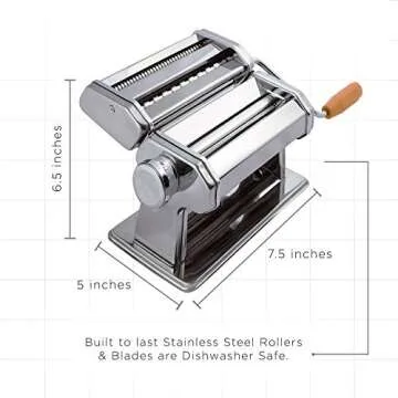 Pasta Maker - Original Design - Noodle Roller Hand Press Machine w/Adjustable Thickness - Washable Aluminum Alloy Rollers & Cutters - Manual Kit Best for Spaghetti, Fettuccini & Lasagna Dough