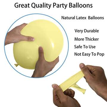 Why You'll Love This Product? Our Pastel Yellow Balloons are more than just decorations; they’re the foundation for unforgettable memories. The soft, inviting shades of yellow symbolize warmth and happiness, making them the perfect backdrop for those special moments in life. From creating stunning balloon arrangements to facilitating delightful DIY decor projects with friends and family, these balloons encourage creativity and joy. Embrace the vibrant allure of our kit, and let it bring your vision to life for any celebration!
