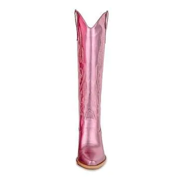 Pasuot Pink Cowgirl Boots - Wide Calf Retro Knee High Chunky Heel