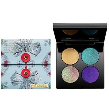 Within this compact, you'll find four captivating shades (1.5g each) that can be mixed and matched for endless combinations. From the glittering golden sparkle of Incandescent Gold 003 to the glistening blue-green of Blitz Aquamarine, each color is designed to highlight your unique beauty. Stand out with the sparkling emerald duochrome of VR Emerald or make a bold statement with the vivid purple sheen of Blitz Purple.