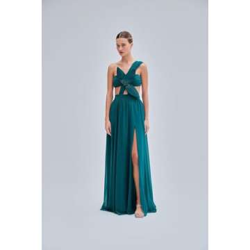 PATBO, One Shoulder Cutout Flower Gown, 2, Galapagos
