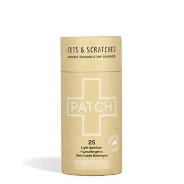PATCH Natural Eco-Friendly Bamboo Adhesive Sensitive Skin Bandages, Hypoallergenic Bandages for Sensitive Skin, Compostable, Biodegradable, Latex Free and Plastic Free, 25 Count - 3pk
