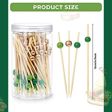 Show moreIntroducing the Patelai 120 Pcs Cocktail Picks Set, your ultimate solution for a stylish and practical addition to any event! Designed not only to serve functional purposes, these cocktail picks are an exquisite centerpiece for your appetizers. Crafted from high-quality bamboo, these picks strike the perfect balance between elegance and sustainability. With vibrant beads in gold and dark green, they offer a unique charm that adds flair to your gatherings. Perfect for any occasion—from small intimate gatherings to large celebrations—this set helps you elevate your presentation while making serving food a breeze.