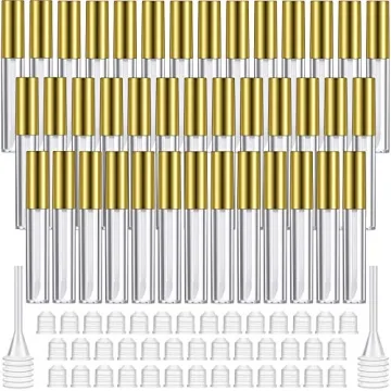 Show more Introducing a wonderful set of 40 lip gloss tubes, perfect for DIY cosmetic enthusiasts and professionals alike! These clear plastic tubes feature a sleek design with a gold cap that adds a touch of elegance to your lip gloss creations. Each tube has a capacity of 10 ml, making them ideal for storing your favorite lip gloss, lip balm, or even lotions.