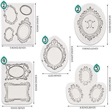 Patelai 5 Pieces Photo Frame Fondant Molds Vintage Frame Molds Silicone Molds Picture Frames Silicone Mold for Cake Decorating,Sugar Gum Paste Chocolate Butter Resin Cookies Polymer Clay