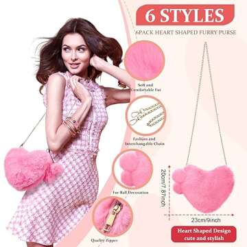 Introducing the Paterr 6 Pack Valentines Day Furry Heart Shaped Purse, a collection of charming crossbody bags that blend style, fun, and practicality effortlessly. These adorable heart-shaped purses are designed for the modern woman who appreciates both fashion and functionality. Crafted from ultra-soft faux fur, each bag measures approximately 7.9 x 9.1 inches, making them perfectly sized for carrying all your daily essentials like your phone, wallet, and lipstick. Available...