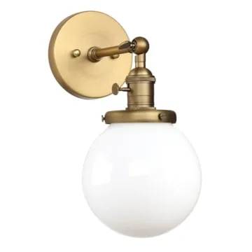 Show moreIlluminate your living spaces with the exquisite Pathson Industrial Wall Sconce. This stunning wall light features a striking white globe design that elegantly merges vintage charm with a modern twist. Perfectly suited for a range of spaces, such as your bathroom vanity, hallway, or even your cozy nook, this sconce creates a warm and welcoming atmosphere. Made with high-quality materials, the brass finish is beautifully complemented by the milky glass, adding sophistication to your interiors. Installation is a breeze with clear instructions provided, making it ideal even for DIY enthusiasts.