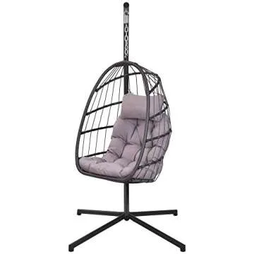 Show moreIntroducing the **Patio Hanging Egg Chair with Stand Swing Chair**, a stunning addition to your indoor and outdoor spaces. This exquisite chair combines a contemporary design with supreme comfort, making it the perfect spot for relaxation. Crafted with a *sturdy aluminum frame and steel stand*, this egg chair not only promises durability but also features a rust-resistant coating, ensuring it remains an elegant part of your home decor for years to come. The unique *weather-resistant wicker* construction allows you to enjoy this chair in any setting, be it your backyard, patio, or even indoors. Equipped with a soft, high-density cushion that includes convenient zippers for easy cleaning, this chair prioritizes your comfort and convenience, making it your go-to favorite seat. Its stylish gray tone seamlessly integrates with various aesthetics, enhancing the beauty of your space while providing functionality.