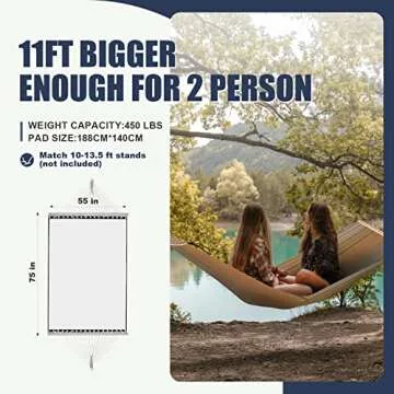 Show moreExperience the ultimate relaxation with the Patio Watcher 14 FT Quick Dry Hammock, designed to comfortably accommodate two people with a generous bed size of 77 inches x 55 inches (195 cm x 140 cm). This hammock is not just wide; it is crafted for durability and comfort, boasting a maximum weight capacity of 450 pounds. Whether you're lounging in your backyard or enjoying a day at the beach, this hammock ensures optimal comfort and stability, featuring a robust steel chain link with a total length of 14 feet. Perfect for pairing with 10-13.5 ft stands (not included), it is versatile enough to suit various settings.