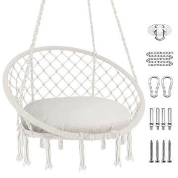 Patio Watcher Macrame Hanging Chair with Cushion - 330 Lbs