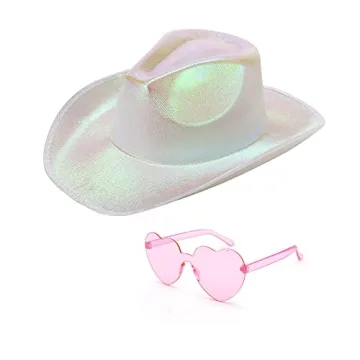 Patyhapy White Space Cowgirl Hat with Heart Glasses - Metallic Holographic Cowboy Hats