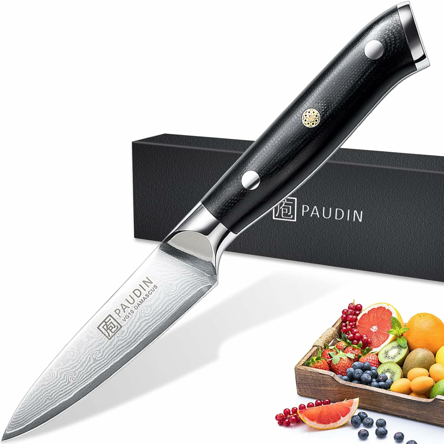PAUDIN 3.5 Inch Damascus Paring Knife - VG-10 Steel, Micarta Handle