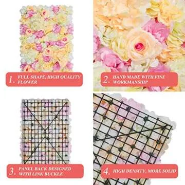 Pauwer Artificial Flower Wall Panels 2 Pack of 16 x 24" Flower Wall Mat Silk Rose Flower Panels for Backdrop Wedding Wall Decoration (Pink+Champagne)