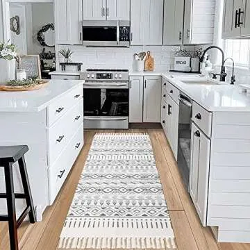 Pauwer Cotton Area Rug Set 2 Piece 4.2'x2'+3'x2' with Tassel Washable Cotton Hand Woven Throw Rugs Runner for Kitchen, Living Room, Bedroom