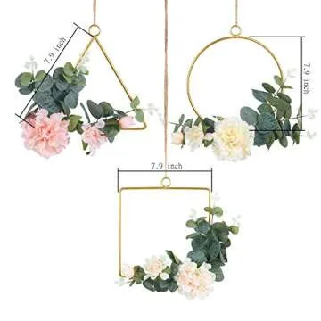 Pauwer Floral Hoop Wreath Set of 3 Artificial Peony Flower and Eucalyptus Vine Wreath for Wedding Party Backdrop Decor