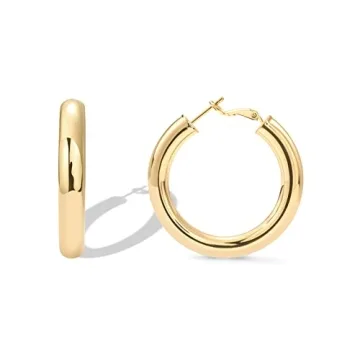 Show more Introducing the stunning PAVOI Gold Hoop Earrings—a must-have accessory that perfectly combines style and comfort. Weighing almost nothing, these thick yet lightweight paddle back gold hoops feature a generous diameter of 40mm, ensuring they make a bold statement without compromising on comfort. Designed with a secure clasp, they offer ease of wear for any occasion. Whether you’re heading to the office, enjoying a brunch with friends, or dressing up for a night out, these earrings will effortlessly elevate any outfit.