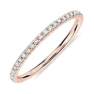 Show moreDiscover the enchanting beauty of this exquisite gold-plated eternity ring, an ideal accessory for women who adore a touch of elegance. Crafted from high-quality sterling silver, this ring features a delicate 1.25mm band adorned with top-tier AAAAA quality cubic zirconia stones, ensuring a stunning sparkle that catches the eye. The beautiful 14K Rose Gold plating not only adds charm but also promises durability, as it is designed to withstand daily wear while maintaining its brilliance. Notable for its hypoallergenic properties, this ring is nickel and lead-free, making it safe for all skin types. The thoughtful design allows for seamless stacking with other rings, providing versatile styling for any occasion. Additionally, this piece is a product of PAVOI, a proudly American-owned brand committed to sustainability. Every ring is made from 100% recycled materials, and the eco-friendly packaging further highlights their mission to reduce environmental impact. With our satisfaction promise, your happiness is guaranteed—if you're not loving your product, we'll make it right within 60 days!