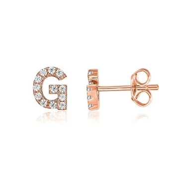 Show morePAVOI 14K Rose Gold Plated Sterling Silver CZ Alphabet Letter Earrings are the epitome of elegance with a playful twist. These exquisite earrings, measuring a delicate 1/8" in width and 1/4" in height, feature a stunning pave setting adorned with AAAAA Quality Cubic Zirconia. The letter "G" shines brilliantly, striking the perfect balance between dainty charm and eye-catching sparkle. Crafted from high-quality sterling silver and plated with 14K rose gold, these earrings not only enhance your look but also ensure hypoallergenic comfort for sensitive ears. Designed for daily wear or special occasions, they effortlessly elevate any outfit while making a personalized statement for yourself or a loved one.