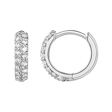 Indulge in elegance with the PAVOI 14K White Gold Plated Huggie Stud Earrings, a perfect fusion of sophistication and sustainability. Crafted with meticulous attention to detail, these earrings feature a 925 Sterling Silver post that ensures lasting durability and comfort. Adorned with brilliant cubic zirconia stones that shimmer captivatingly like real diamonds, these 12mm (1/2 inch) diameter huggie earrings strike the perfect balance between subtlety and style. Ideal for both day and night...